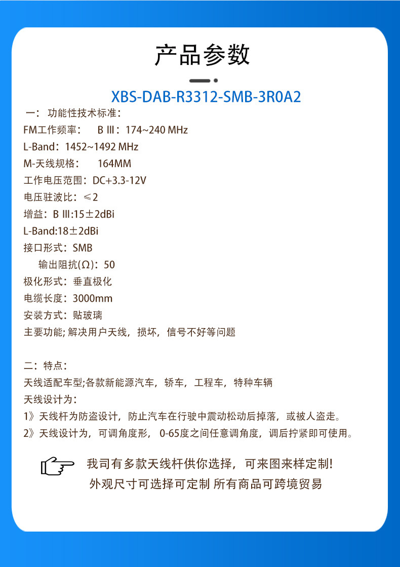 XBS-DAB-R3312-SMB-3R0A2DAB数字收音天线