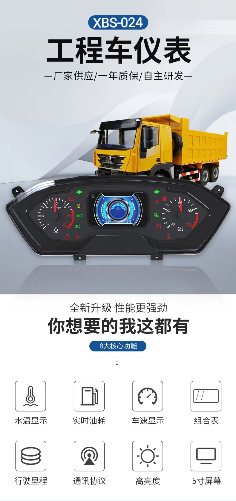 工程运输车仪表盘4.3 5 7 10.1寸自卸车农机特种车前装组合显示屏